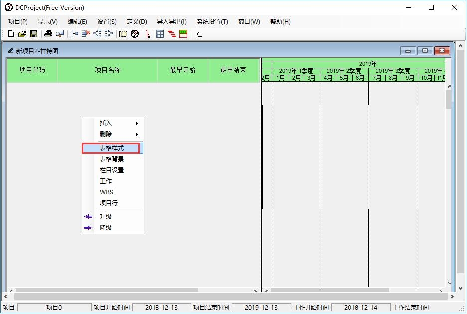 2、这样就创建了一个新的项目表,我们在其中空白区域单击鼠标右键,然后在右键菜单中点击选择“表格样式”,这样可以进行表格内容设置,可以按照使用需要进行调整。