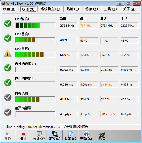 一、下载打开软件,点击左下角的开始即可对系统进行监视。