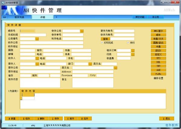 AH快递单打印软件支持圆通顺丰申通韵达中通EMS(新版)等多种套打打印格式和打印模板,快递单打印适用于淘宝店和其它非淘宝的各种快递单打印和查询需求,AH快递单打印查询软件(快递单打印)非常实用简便,为您提供了非常多的人都在使用人用的一款企业个人淘宝店都适用的信封快递单据打印查询管理软件。