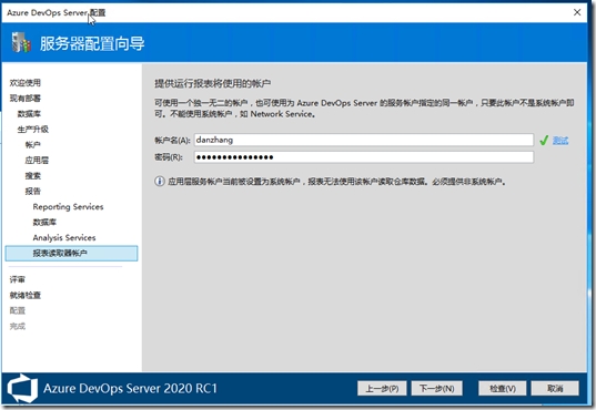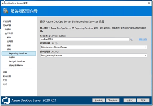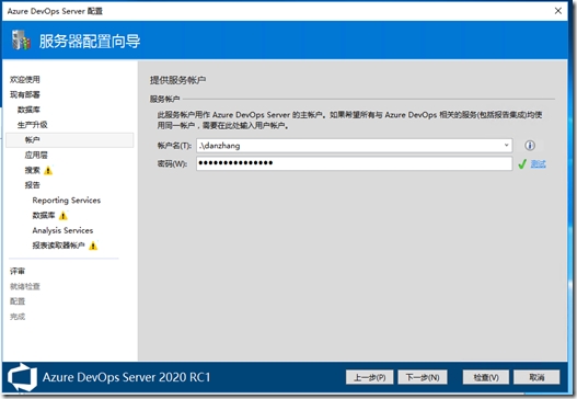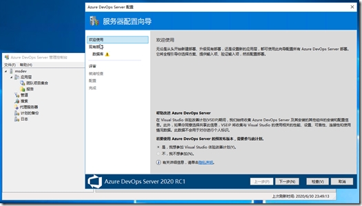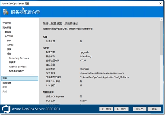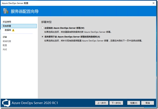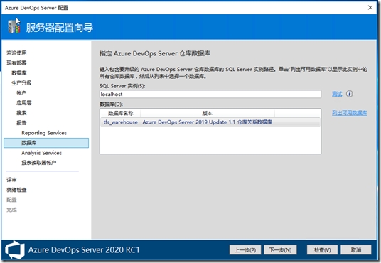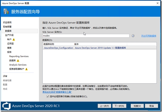 系统默认会选择我原有数据库服务器,并检测到当前DevOps Server版本