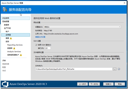 按照系统提示重启服务器后,系统会自动打开Azure DevOps Server 的配置界面。