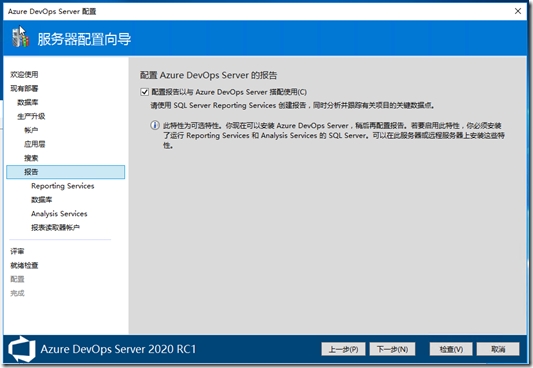 设置是否需要启用报表服务,据说下一个版本就不再支持报表服务,目前微软鼓励客户转向Analytics服务。
