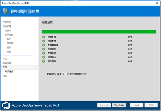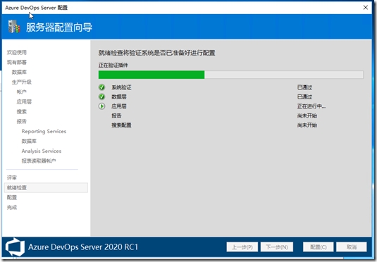 在配置页面中,系统会自动完成Azure DevOps Server使用的IIS安装、初始化或者升级数据库等工作
