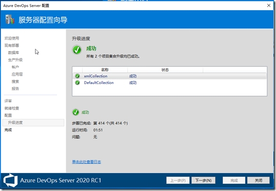 如果是升级,还可以看到每个团队项目集合升级使用的时间