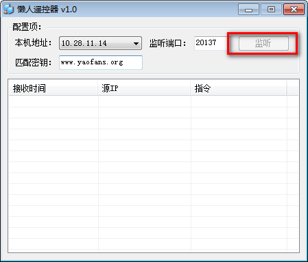 二、打开电脑中的懒人遥控器软件,输入本机IP地址和监听端口,点击监听。