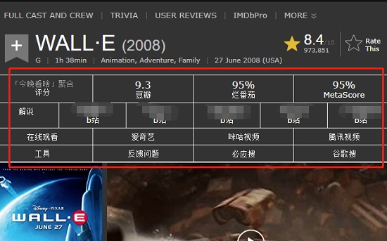 聚合了豆瓣、IMDb、烂番茄等知名网站的评分信息