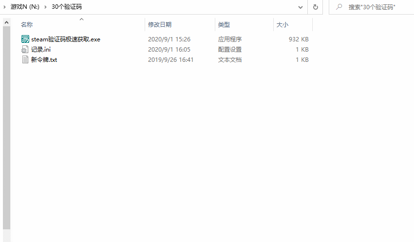 第一次获取的时间,在软件目录下会生成一个“记录.ini”的文档,它是用于记录用到第几个验证码了,这个不用管,30个用完了就把这个“记录ini”删掉就行。
