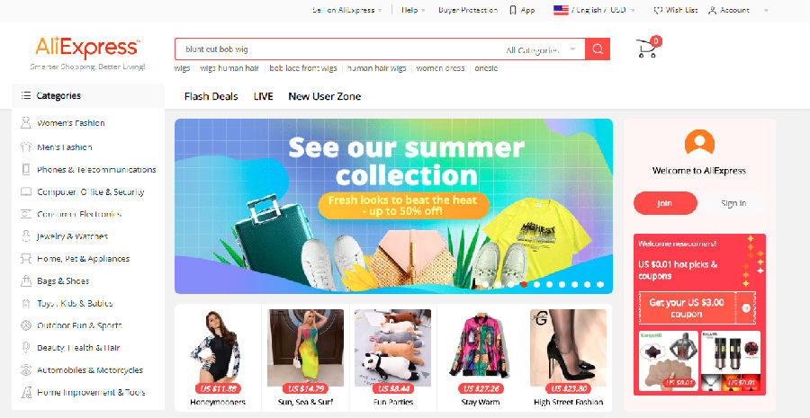 目前,速卖通覆盖全球220个国家和地区,全球买家数已达1.5亿,是全球第三大英文在线购物网站。