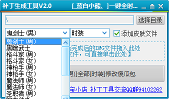 dnf一键全时装武器补丁生成工具支持对傻瓜包游戏补丁进行一键生成的操作,让用户能够按照自己的喜好和需求制作游戏补丁,用户只需要导入图片就可以立即生成角色的时装和武器补丁,即使之前没有经验的玩家也可以操作,非常的简单非常实用。