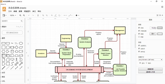 drawio单文件版致力于成为完全开源、免费、并且高质量的绘图软件,软件支持多个平台,能够帮助用户轻松地制作流程图,提供各种各样的绘图资源,满足用户的图像处理需求,适用于商务、工程、电气、网络设计、软件设计等多种行业领域,非常的强大非常实用。