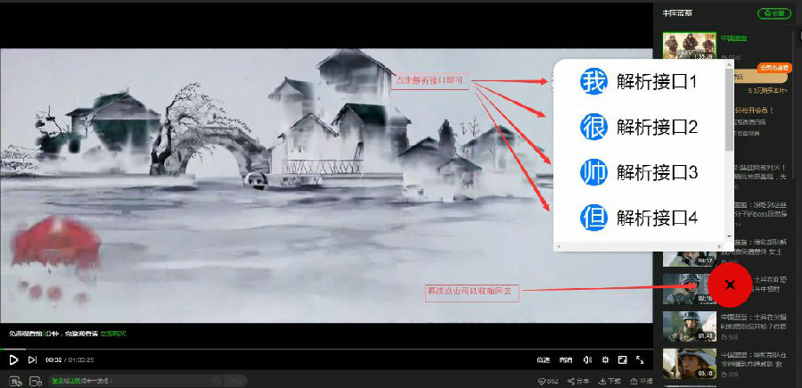 无心VIP视频解析脚本能够对优酷、爱奇艺、腾讯等所有网站的视频资源进行解析,操作起来非常简单,只要将想看的视频网址输入到软件中,就能够立即对视频进行解析,帮助用户免费收看视频网站上的vip资源,不用花一分钱。
