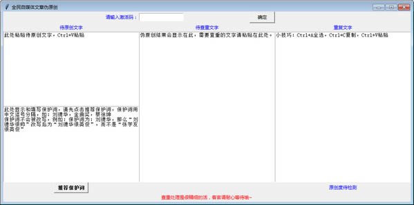 一、下载打开软件,复制需要消重的文章,设置好关键词保护。