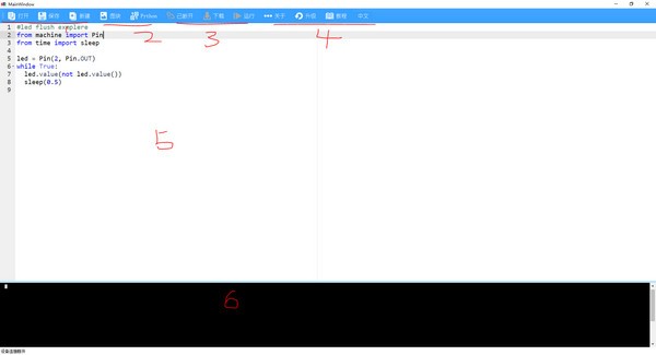 1:文件操作区域 打开--打开文件内容 保存---保存文件 新建---新建文件