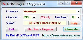 NetSarang AIO 8in1 Keygen主要用于注册NetSarang Computerlnc.公司的系列软件,支持Xfile、Xftp、Xpd、Xmanager等全套软件,不仅能生成序列号,还能进行单独的激活,软件专业非常实用且功能非常强大,能够帮助网络工作人员进行工作。