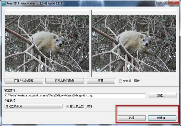 Free 3D Photo Maker可快速产生3D影片,拥有简单好用的操作界面,支持简体中文界面,您可以将照片添加在程序里以后,软件自动对图像进行修正使它可以看上去有立体效果并保存它,非常非常方便,添加立体效果后的就不只是平平无奇的平面视觉照片了,会显得更加生动!