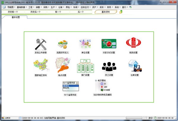 15、其它功能: 自定义导航界面(不喜欢自带的导航,就自已定义),权限树形细分,用户可自定义界面风格。