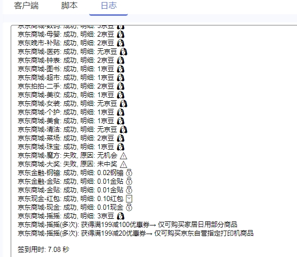京东商城各大购物版块签到