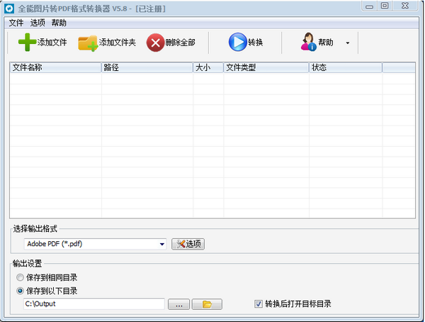 全能图片转PDF格式转换器界面简洁美观,操作起来十分非常方便,能够快速地将图片转换成PDF文件格式,支持多种图片格式的转换,包括JPG、TIF、BMP、GIF、PNG、PSD等几十种格式的图片转PDF文件,用户只需将图片文件拖拽到软件中即可立即转换,非常非常实用。