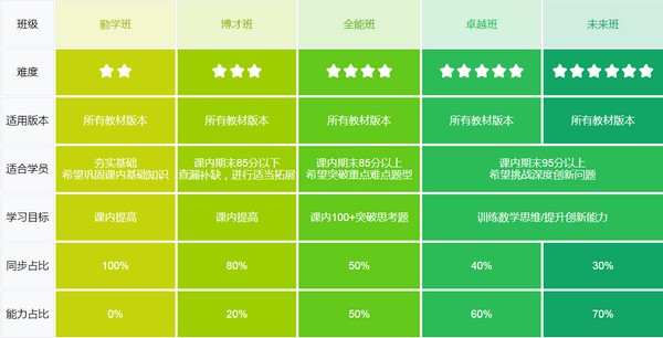 在26年深厚教学积淀基础上,集合清北毕业学霸名师及近百位行业10年以上教龄、拥有丰富一线教学经验的教学研究人员共同开发出五大课程体系:勤学体系、博才体系、全能体系、卓越体系、未来体系等,为不同地区不同版本不同层次的学员提供与一线城市同样优质的师资与学习资源。