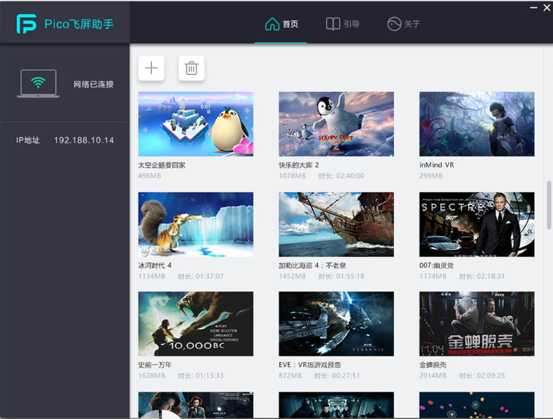pico飞屏助手一体机版能够在电脑和一体机处于同一网络的情况下,将电脑上的大型视频文件传输至软件播放,如果你的储存空间有限,或者想省去把电脑上的视频文件使用U盘复制到移动端的繁琐操作,都可以使用这款软件进行传输,解决了体积过大或过小无法拷贝的问题。