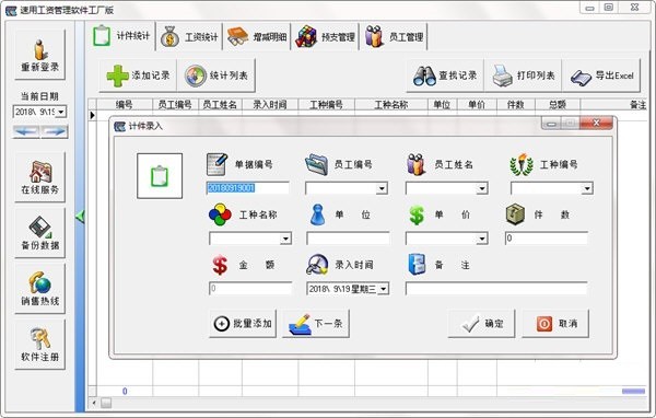 二、工种类别管理:管理企业的基本工种信息,各工种的计件价格