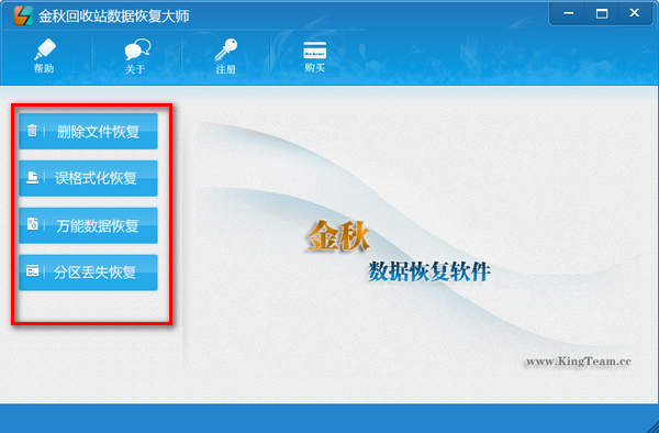 金秋回收站数据恢复大师能够从Windows10/8/7/XP电脑删除文件到回收站还原恢复,支持常见的照片、文档、视频与音频、rar、zip等文件恢复,还可以还原人为误删除的文件、病毒破坏的各种文件,包括导致的分区表损坏、分区丢失也能完美复原,是非常强大的非常多的人都在使用人用的一款文件恢复软件。