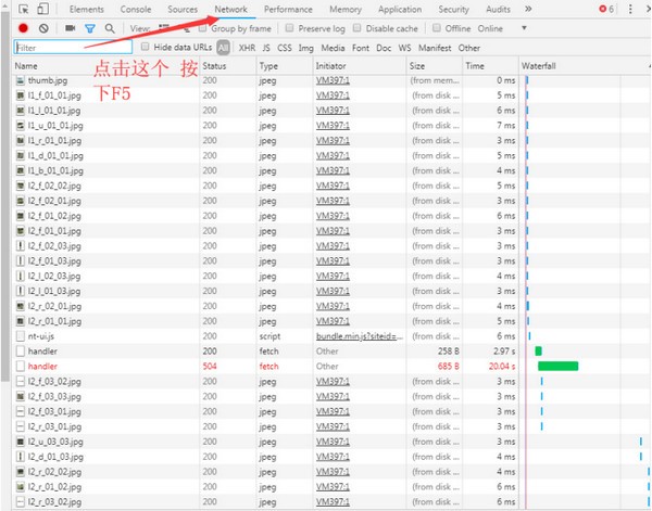 3.这个时候我们选择 network(网络)然后在按下F5刷新一下这个页面见下图