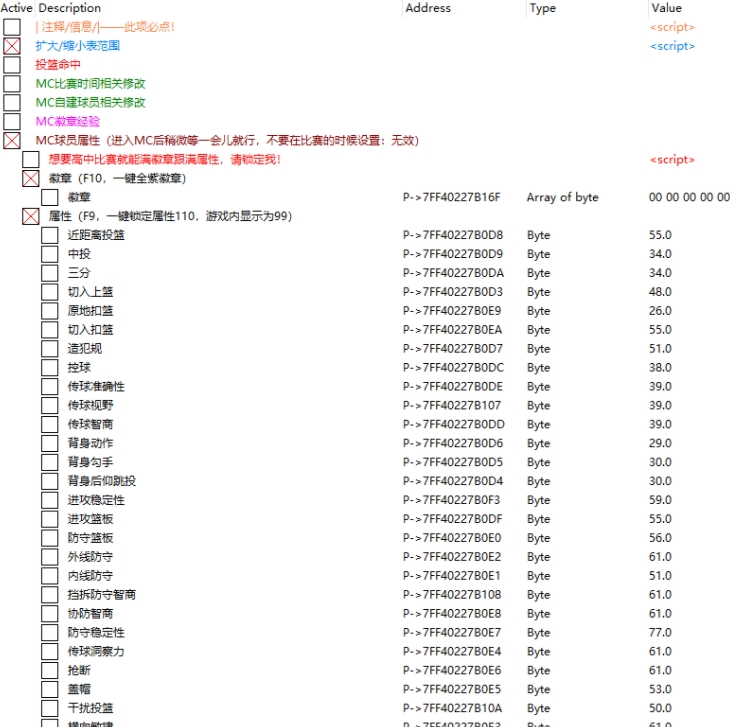 NBA2K21综合多功能修改工具ce文件ct专为喜欢NBA2K21这款游戏的玩家们推荐,是非常非常实用的功能型修改工具,除了改变游戏中人物的属性之外,这个修改器还可以修改违法行为和游戏时间,让用户能够体验到更加舒服非常方便的游戏功能,功能十分全面。
