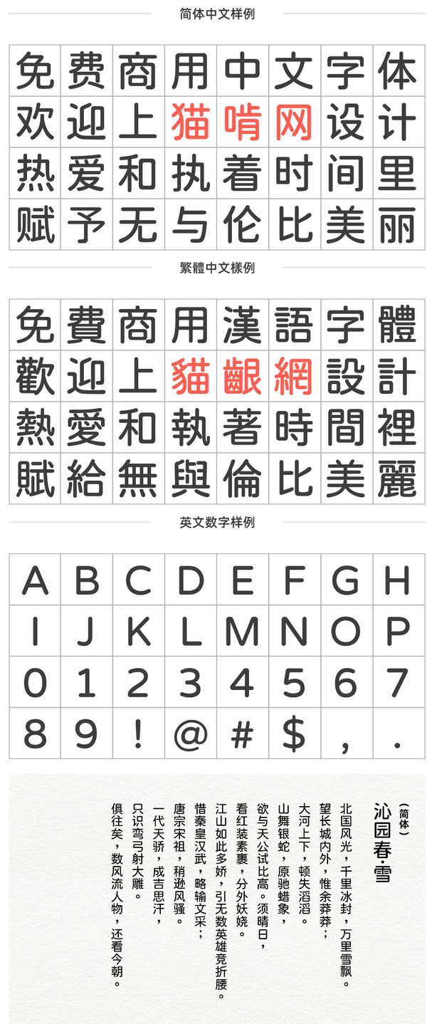 极影毁片圆将小衫圆体、思源黑体、江城圆体、狮尾圆体等混合并创作为新字体,以jf open粉圆为底本,使用江城圆体3.0、狮尾圆体SC作为增补,并且根据通用规范汉字表和修正常用的简体字笔画整理,软件支持简体中文、繁体中文、日语的正常显示。