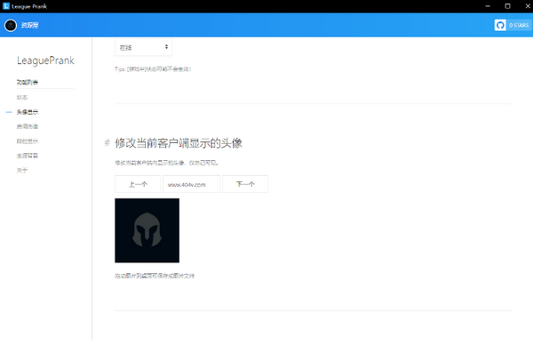 League Prank能够帮助用户修改本地客户端的状态、生涯背景、段位显示,还可以快速修改英雄联盟中的个人信息,比如头像、个人昵称和信息等等,这些都是符合英雄联盟用户使用协议的更改,但是使用这款软件更加非常方便快速。