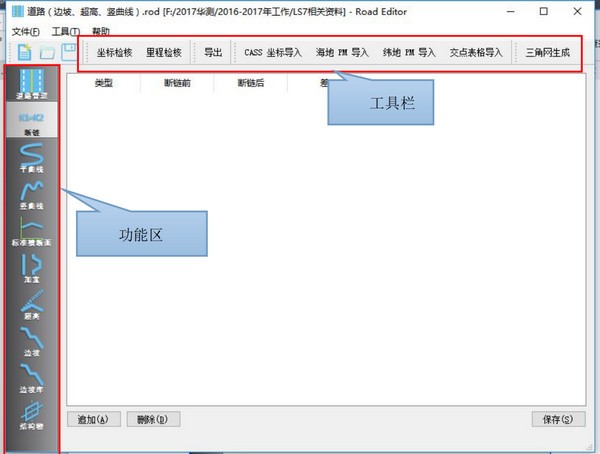 注:请在所有非平面数据之前输入断链,以免引起非平面数据桩号异常。