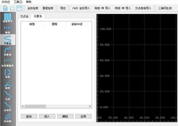 可选择“交点法”或“元素法”标签页进行道路数据编辑。