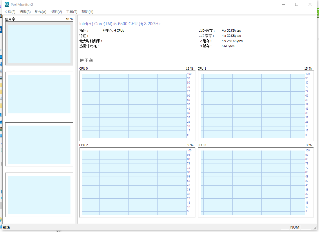 如果您的系统包含多个处理器,则可以通过选择→处理器菜单中的选择来选择要监控的处理器。然后,您可以在菜单选择→计数器中查看可用计数器列表。