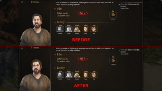 骑马与砍杀2永远年轻MOD能够修改骑马与砍杀2中的人物外观,防止游戏中的角色老化,玩家使用这个mod后自己的人物角色以及配偶都不会变老,永远保持青春的样貌,一旦玩家的角色年龄超过25岁,那么这款mod会让他们看起来更加年轻。