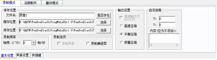 奋斗小子屏幕录制专家具有全屏录像功能,可以设置录制的帧率、输出视频的压缩等级以及是否录制声音,还有录像播放器,能够查看录制的视频。