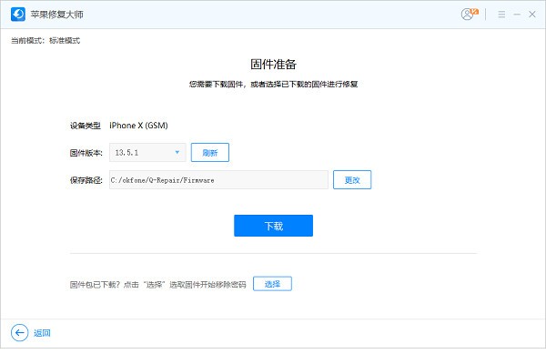 ·标准模式:标准模式下修复黑白屏、死机、不停重启等iOS系统问题而不会丢失数据;
