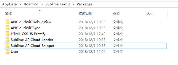 4、如果不通过Package Control安装,可在APICloud 官网下载插件后解压到Sublime text3 的Packages 目录下即可