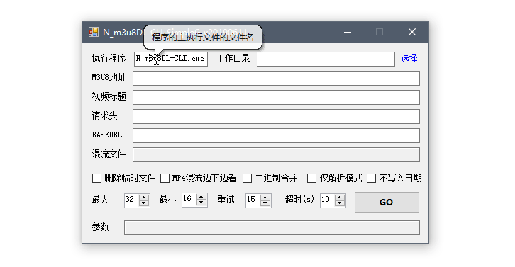 目前只支持Windows平台,程序依赖ffmpeg.exe(仅用于合并视频)、.NET4.0以上,N_m3u8DL-CLI.exe为主程序,N_m3u8DL-CLI-SimpleG为临时使用的简易用户界面。