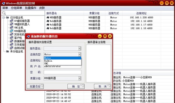 5.集成可直接连接VNC/MSTSC/Radmin等远程,可批量管理