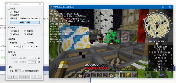 虽说这个程序初衷是为了实现 Minecraft后台钓鱼、刷石、刷经验,但是既然写都写了,还是顺便做了一个前台模式,这样它也可以作为一个普通的前台鼠标连点器使用。