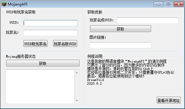 如果需要易语言模块,请使用MojangAPI.ec