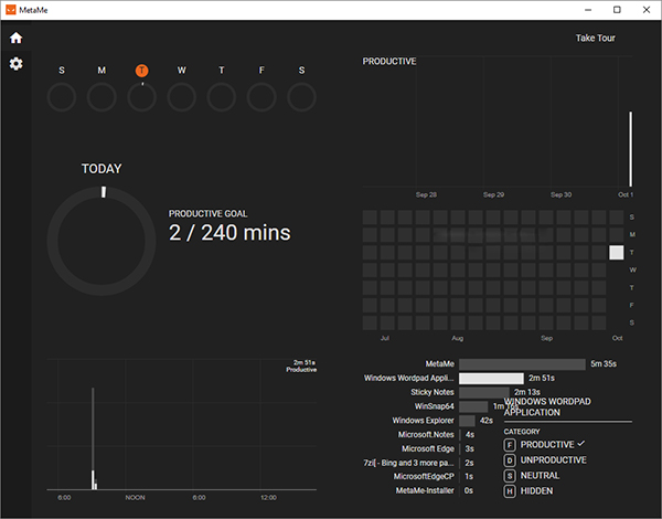 你有每日,每周和每月的饲料,所有的结合,以显示你最有成效的时刻。值得注意的是,应用程序后台活动不会被考虑在内。它允许用户为他们设定一个特定的目标。根据一个人想要生产的小时数,这款应用提供了一系列选项,从低到高不等。这些特性使得这款应用程序非常通用,可以根据个人需求进行调整。这个特殊的事实代表了它最好的部分。通过使用特定的键盘组合可以切换应用程序。