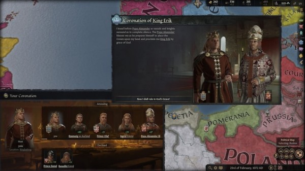 十字军之王3加冕你的国王MOD专为喜欢十字军之王3的玩家们打造,由“Cheesus”制作,是一个非常具有仪式感的mod,玩家安装补丁后就能由自己教会的代表来祝福你们的君王统治了,为上位的君王进行加冕活动,体验感十分真实。