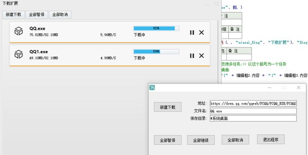 因为最近弄的软件需要下载扩展,弄了一个简单的小程序,aria2c还是蛮快的,里面包含了例程,也用了很简单的进程通信,所以针对于新手来说,也能很好的去操作。