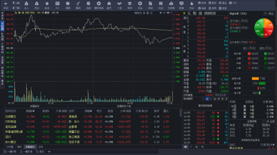 个股详情,经典的版面布局,贴合用户操作习惯。右方展示五档及明细,同时可直观看到个股资金情况。