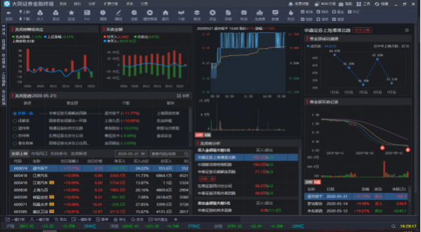 大同证券(综合金融终端)交易方面支持普通交易、融资融券、港股通、股转交易、上海LOF基金、分级基金等。行情方面支持全市场行情查看。在资讯上综合金融终端对接同花顺最新资讯,除基础资讯外新增数据中心、龙虎榜等智能资讯非常方便客户对市场要闻进行查看。