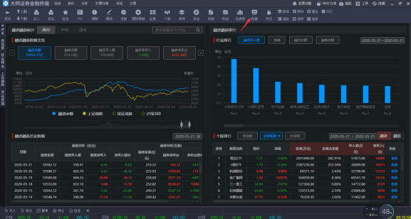 数据,融资融券,全新的融资融券可视化展示效果,将融资融券买卖及余额情况展示出来,辅助用户判断个股、行业状况。(未来我们会在数据中心添加更多模块)