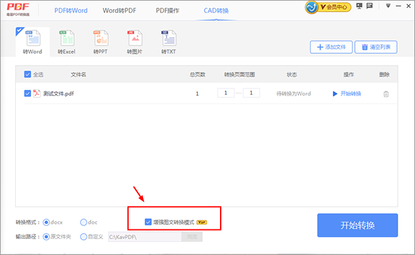 3、支持PDF转WORD,注意:只能转换文本类型的PDF,扫描行的PDF内容为图片,不能转换为Word。