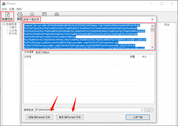 三、磁力链接1、如图所示,在这里输入需要下载的内容,软件底部可以添加biTtorrent任务,也可以制作种子文件