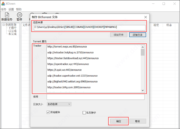 2、磁力链接是建立在udp协议通信的基础四、制作种子文件1、制作种子文件功能,在软件下方添加文件,在软件显示种子属性,可以自动检查区块大小。